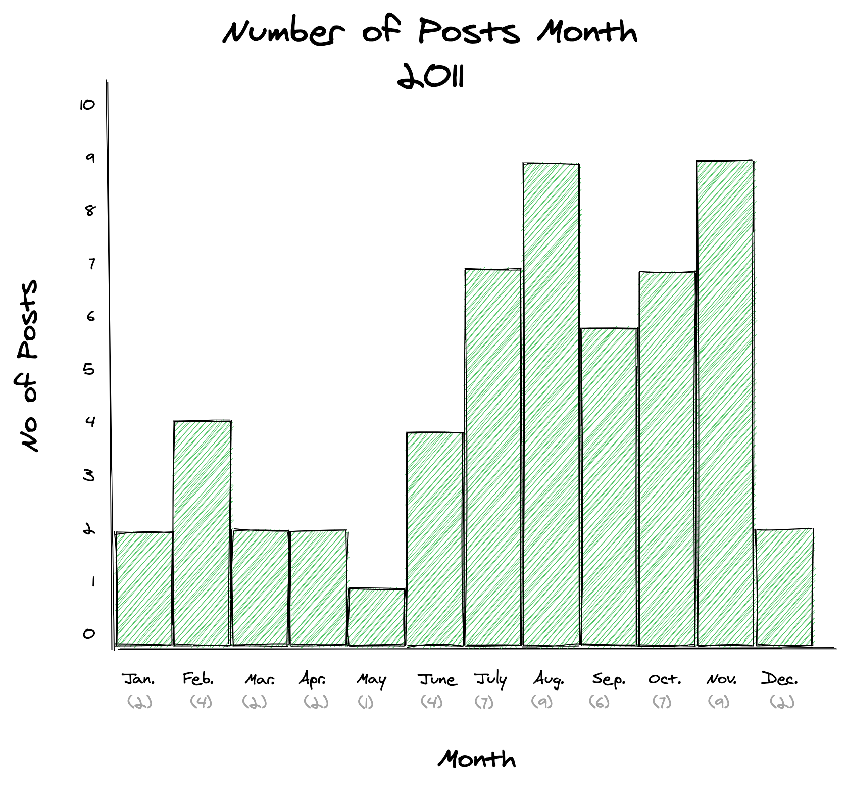 - Created a histogram of posts per month