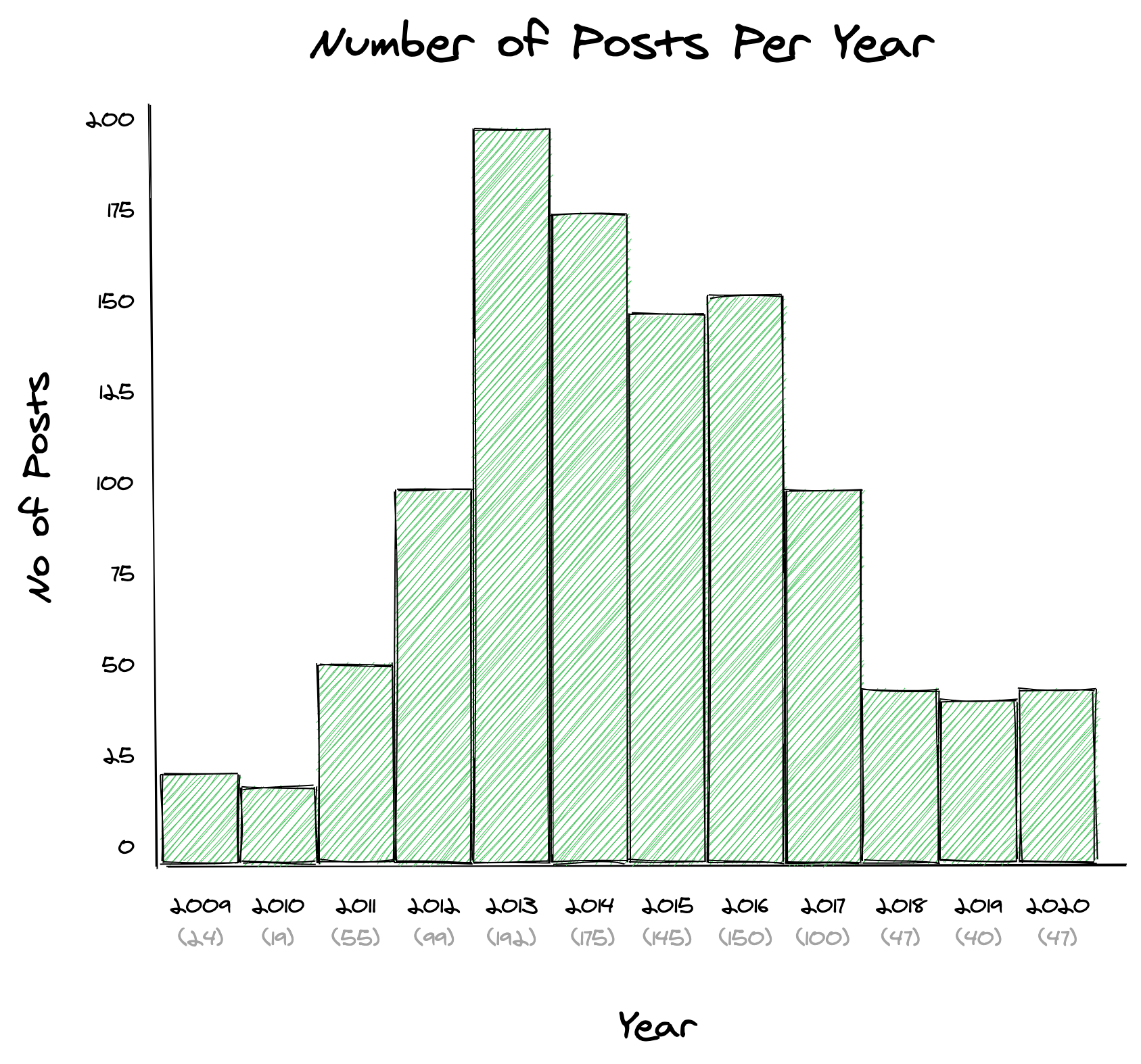 Here is the number of posts per year: